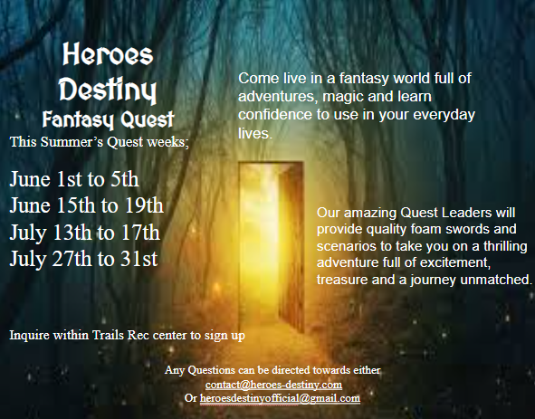 We are happy to announce that Heroes Destiny’s summer quests for 2026! We will be at the Trails Recreation Center for our quests next year.